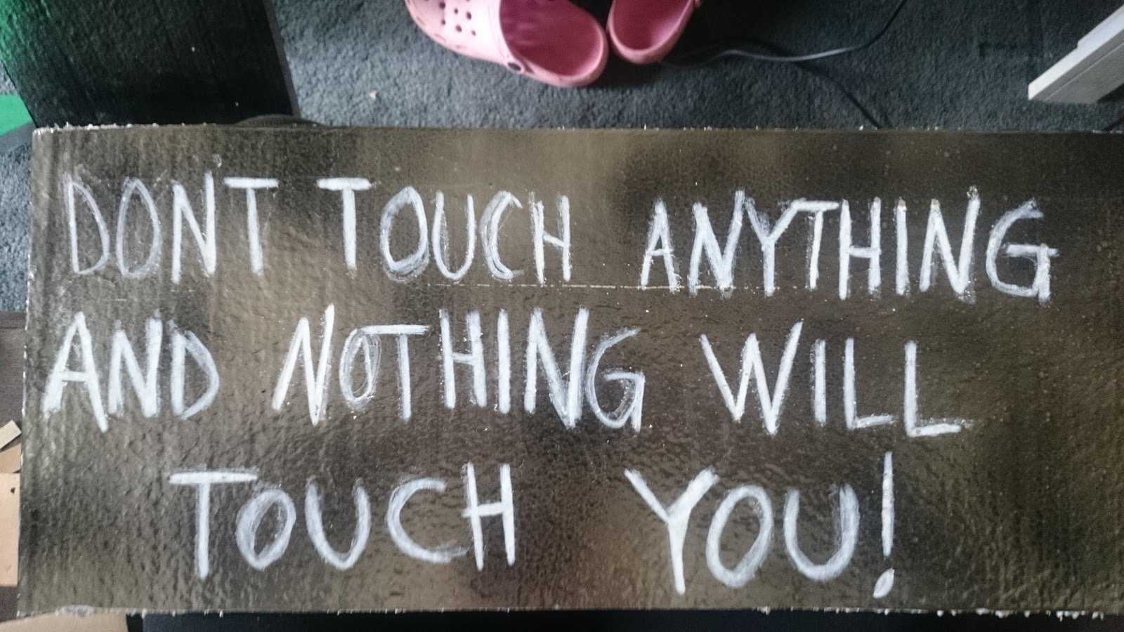 From 1 sheet I managed to get 22 9*21 inch blocks which fits perfectly into the "framed" spaces. Then I lightly sprayed the foil side with black spray paint, this allows a little of the silver to show through, which add dimension. Then I took my oil pencil and added the wording, nothing fancy and not all the same. I did use some stencils for some and free handed others. Using the wax pencil also makes it weather proof alleviating the step of sealing these :) Then I glued 2 magnetic buttons to the back of each block. This makes it very easy set up and take down.
